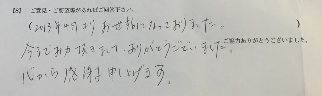 お客様の声に感謝